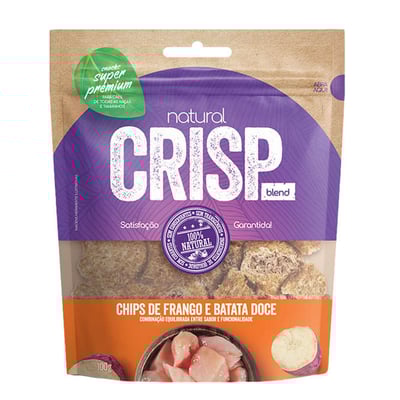 Petisco natural crisp blend chips de frango com batata doce para cães 100g