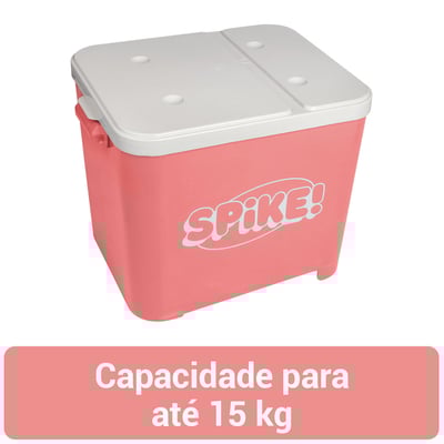 O Porta Ração Spike Rosa tem uma capacidade máxima de 15 kg, adequando-se a quem precisa armazenar grandes quantidades de ração.