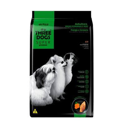 Racao Caes Three Dogs Super Adultos Racas Pequenas E Mini Frango Cenoura 1Kg - Compare ofertas e economize