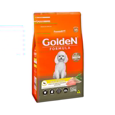 A Ração Golden é composta por uma mistura balanceada de ingredientes que proporcionam a dieta ideal para cães adultos de raças pequenas. Inclui farinha de peru e frango, farinha de vísceras de frango, proteína isolada de suíno e outros ingredientes como milho integral moído, quirera de arroz e polpa de beterraba.