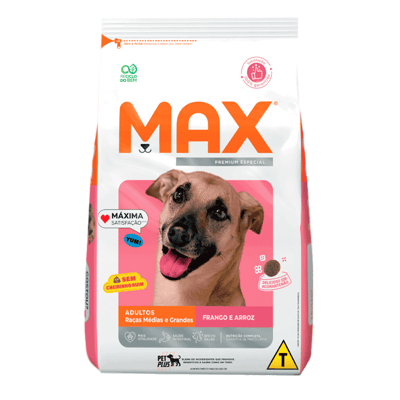 A Ração Max é indicada para cães adultos de raças médias e grandes.