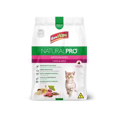 A Ração Natural Pro Baw Waw Sabor Carne E Arroz foi desenvolvida especificamente para gatos filhotes, de todas as raças. A combinação de carne e arroz proporciona uma mistura deliciosa que os pequenos adoram, enquanto ingredientes especiais garantem um crescimento saudável em peso e estatura física.