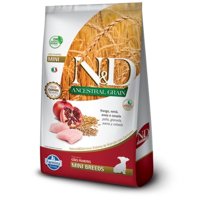 Ração farmina n&d ancestral grain para cães filhotes de raças pequenas sabor frango e romã