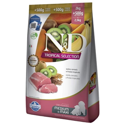 Ração N&D Tropical Selection Para Cães Filhotes De Porte Médio E Grande Sabor Suíno - 2,5Kg - 2kg + 500g Grátis - Compare ofertas e economize