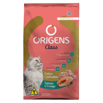 A seguir, detalhamos as especificações da Ração Origens Class Sabor Salmão e Frango para Gatos Castrados: