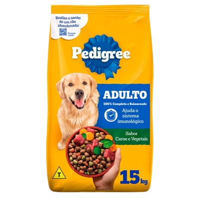 Ração pedigree carne e vegetais cães adultos raças médias e grandes 15 kg