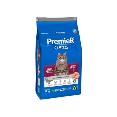 Ração Premier Gatos Adultos Pelos Longos Sabor Frango - 7,5Kg - 7,5 Kilos - Compare ofertas e economize