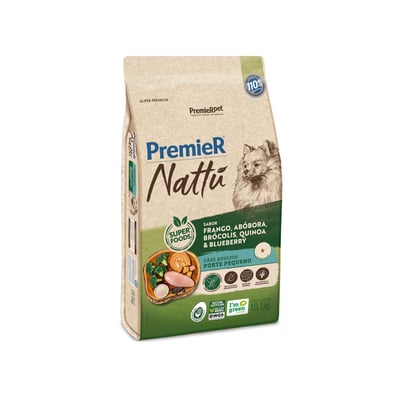 Ração premier nattu cachorros adultos raças pequenas frango, abóbora e brócolis 10,1 kg