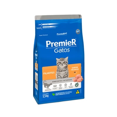 Ração seca premier gatos ambientes internos filhotes sabor frango 1,5kg