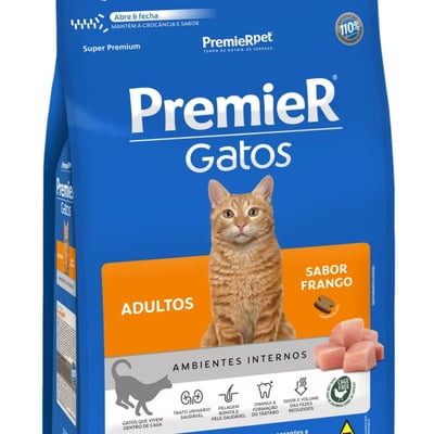 Ração seca premier gatos adultos ambientes internos sabor frango 1.5kg
