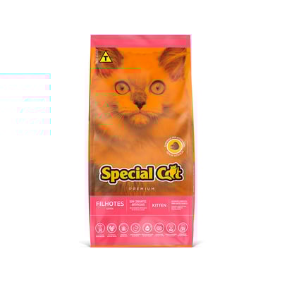 A Ração Special Cat Para Gatos Filhotes é um alimento completo e balanceado, projetado especificamente para atender às necessidades nutricionais de gatinhos em fase de crescimento. Ideal para gatos filhotes até os 12 meses, esta ração premium é formulada por veterinários para garantir que seu pequeno felino receba todos os nutrientes necessários para um desenvolvimento saudável e feliz.