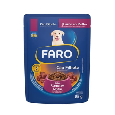 Racao Umida Faro Para Caes Filhotes Sabor Carne Sache 85G - Compare ofertas e economize
