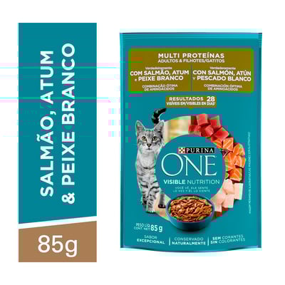 Ração Úmida Multi Proteínas Purina One Para Gatos - Salmão, Atum E Peixe Branco 85G - Compare ofertas e economize