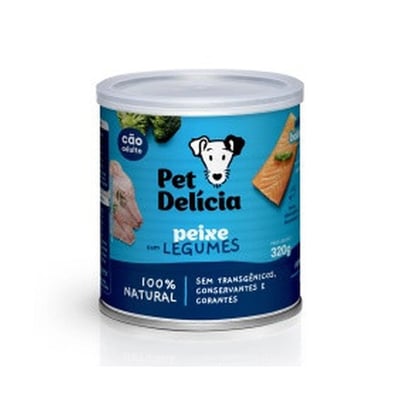 Ração úmida natural pet delícia peixe com legumes proteína alternativa para cães adultos 320 g