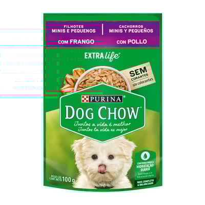 Ração úmida sachê purina dog chow extra life frango para cães filhote raças minis e pequenas - 100g 1un.
