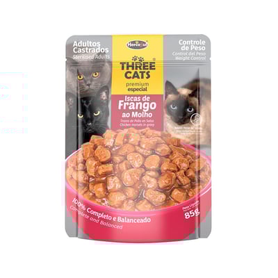 Ração Úmida Three Cats Frango 85G Para Gatos Castrados - Compare ofertas e economize