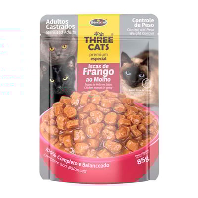 Ração Úmida Three Cats Original Castrados Frango - Sachê 85G - Compare ofertas e economize