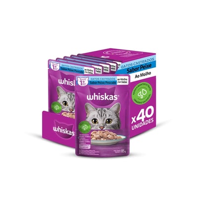 Ração Úmida Whiskas Peixe Ao Molho Para Gatos Adultos Castrados - Kit 40 Unidades - Compare ofertas e economize