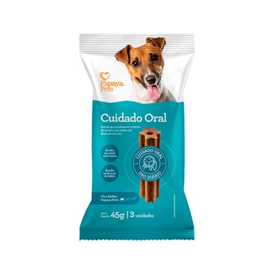 O Snack Cuidado Oral Papaya Pets foi desenvolvido com o objetivo de promover o bem-estar dental nos cães adultos de porte pequeno. Este petisco é enriquecido com hexametafosfato de sódio, um ingrediente eficaz no controle do tártaro, que auxilia na prevenção do acúmulo de placa bacteriana.