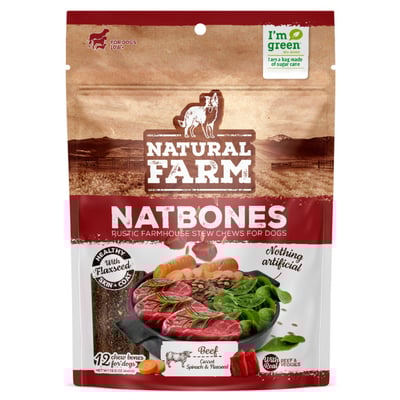 O que torna o Snack Natural Farm Natbones especial é a combinação de ingredientes naturais, ausência de transgênicos e formulação pensada para beneficiar a saúde global do cão, incorporando o conceito de superalimento.
