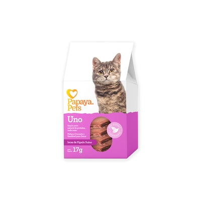 Com o Snack Papaya Pets Uno Iscas De Fígado - 17G Para Gatos, você oferece o melhor em sabor e saúde para seu pet, com a confiança de que está escolhendo um produto de qualidade superior e cuidadosamente formulado para o bem-estar do seu felino.