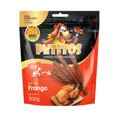 Oferecer o Snack Petitos como recompensa após tarefas cumpridas ou lições aprendidas é uma maneira eficaz de treinar seu pet, fortalecendo a ligação entre vocês. Além disso, a textura crocante e o formato de stick contribuem para uma mastigação saudável, ajudando a massagear as gengivas dos filhotes e aliviar o desconforto durante o crescimento dos dentes. O produto está disponível em embalagens práticas de 500g e 1kg, que facilitam o armazenamento e mantêm o frescor do petisco por mais tempo.