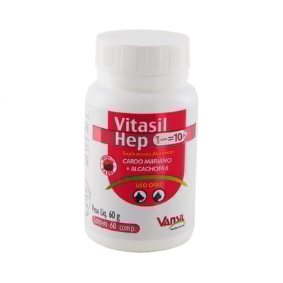 O Vitasil Hep vem em uma embalagem com 60 comprimidos.