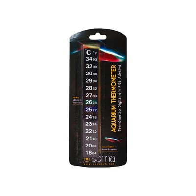 O Termômetro Soma é extremamente fácil de usar. Antes de aplicar a fita adesiva, certifique-se de que a superfície interna do vidro do aquário esteja limpa e seca. Fixe a fita em um local facilmente visível para que a leitura possa ser feita rapidamente. O display digital facilita a visualização e permite um monitoramento contínuo da temperatura.