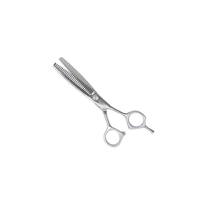 Entre os diferenciais da Tesoura Dentada Chalesco, destaca-se seu acabamento em aço cromado que não apenas melhora a durabilidade, mas também confere um visual elegante à ferramenta. A presença de uma lâmina dentada é um ponto crucial para cortes uniformes e precisos, especialmente em pelagens mais densas ou onduladas.